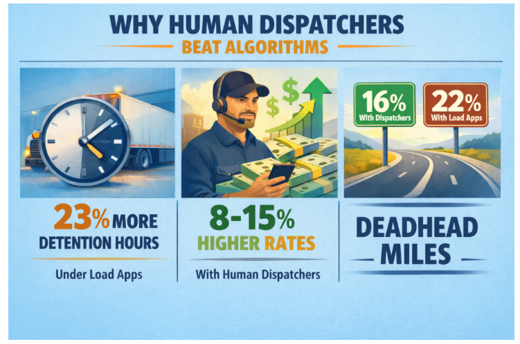 In 2026, owner-operators who are looking at dispatch services will have to choose between algorithmic load apps and human dispatch support. This choice will have a direct effect on their weekly revenue, detention risk, and deadhead miles.